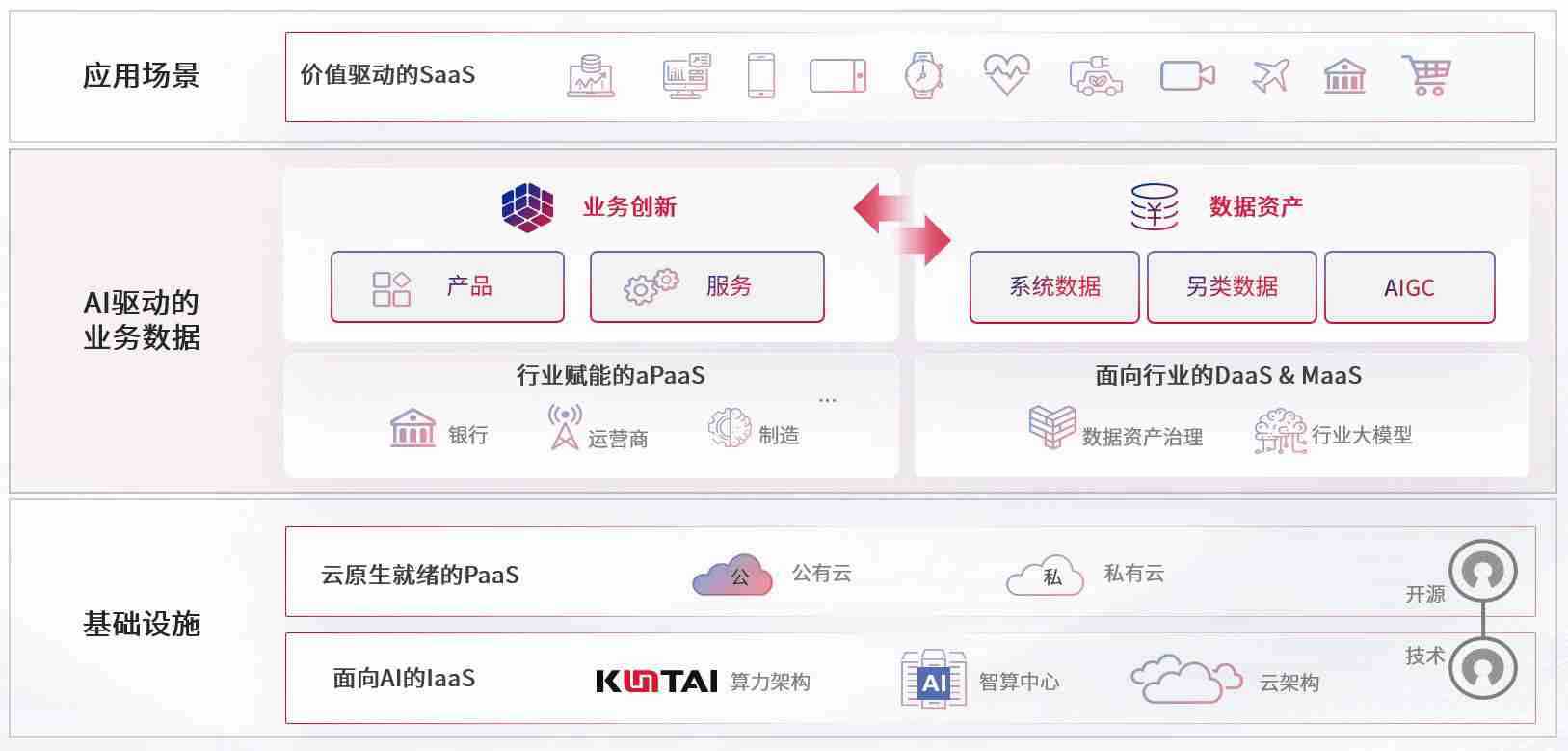 数字时代,,围绕企业数字化转型的关键要素,,1号娱乐数码开创性的提出数云融合战略和技术体系框架,,着力在云原生、、、数字原生、、AI原生和信创产业上架构产品和服务能力,,为处在不同数字化转型阶段的快消零售、、、汽车、、金融、、、、医疗、、、政企、、教育、、、、运营商等行业客户提供泛在的敏捷IT能力和融合的数据驱动能力,,,,构建跨界融合创新的数字业务场景和新业务模式,,助力企业级客户建立面向未来的核心能力和竞争优势,,全面推动社会的数字化、、、、智能化转型升级。。